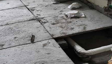 防水完成后進(jìn)行沙漿保護(hù),再用磚頭做柱子,面放成品的鋼筋預(yù)制板,架空鋪設(shè)、墊平兩層再找平貼磚