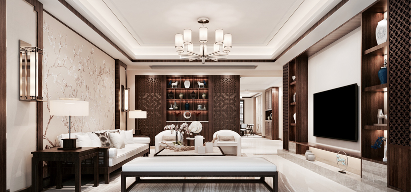 博林天瑞別墅裝修案例中將現(xiàn)代元素和傳統(tǒng)元素結合在一起,以現(xiàn)代人的審美需求來打造富有傳統(tǒng)韻味的空間,讓傳統(tǒng)藝術在當今社會得到合適的體現(xiàn)