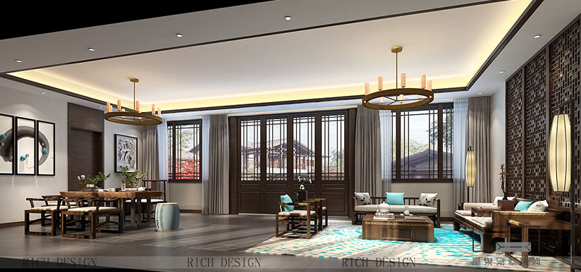 中式別墅裝飾設(shè)計(jì)提煉了古意天花板文化元素以渲染時(shí)空穿越般的古意,