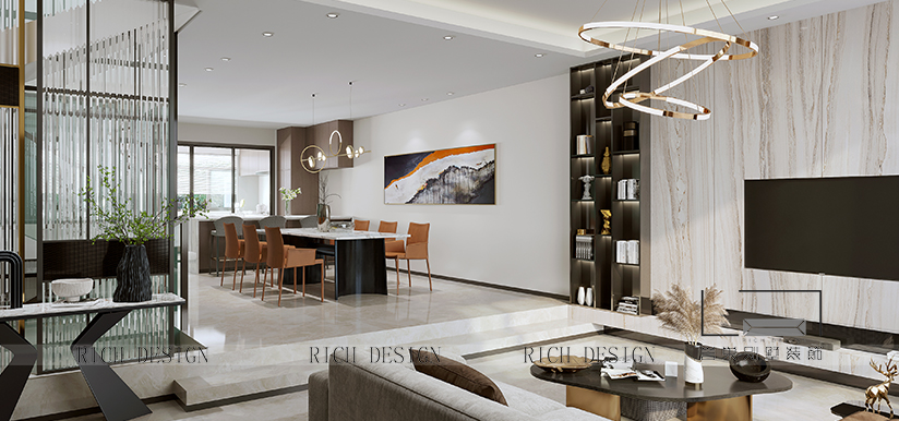 作為裝飾體系中最流行的風(fēng)格學(xué)派之一,本案的現(xiàn)代風(fēng)格帶著云淡風(fēng)輕的獨(dú)家氣質(zhì),以清雅的色彩搭配、創(chuàng)新的材質(zhì)混合以及妙趣的線條擺件等,創(chuàng)造出了一個不囿于現(xiàn)實、不落于俗套的別墅生活空間。
