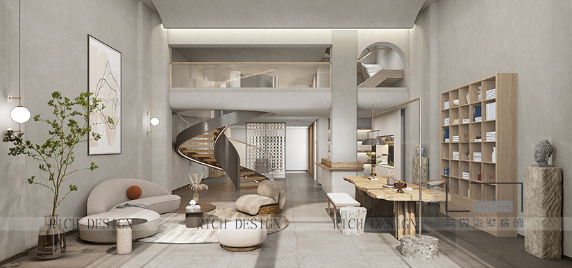 本案傳承侘寂風不追求鮮艷跳脫的色彩效果,也沒有繁雜的線條裝飾,室內(nèi)整體裝飾沿用淺色系的顏色,灰白,米白,大地色為底色。