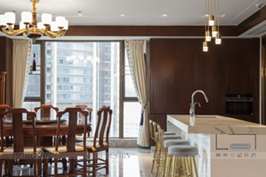 設(shè)計(jì)師對(duì)于中式設(shè)計(jì),并非搬來(lái)一個(gè)古色古香的木琴,而是將浸透東方的那種對(duì)于和諧、含蓄的美感取出,呼應(yīng)于當(dāng)下。